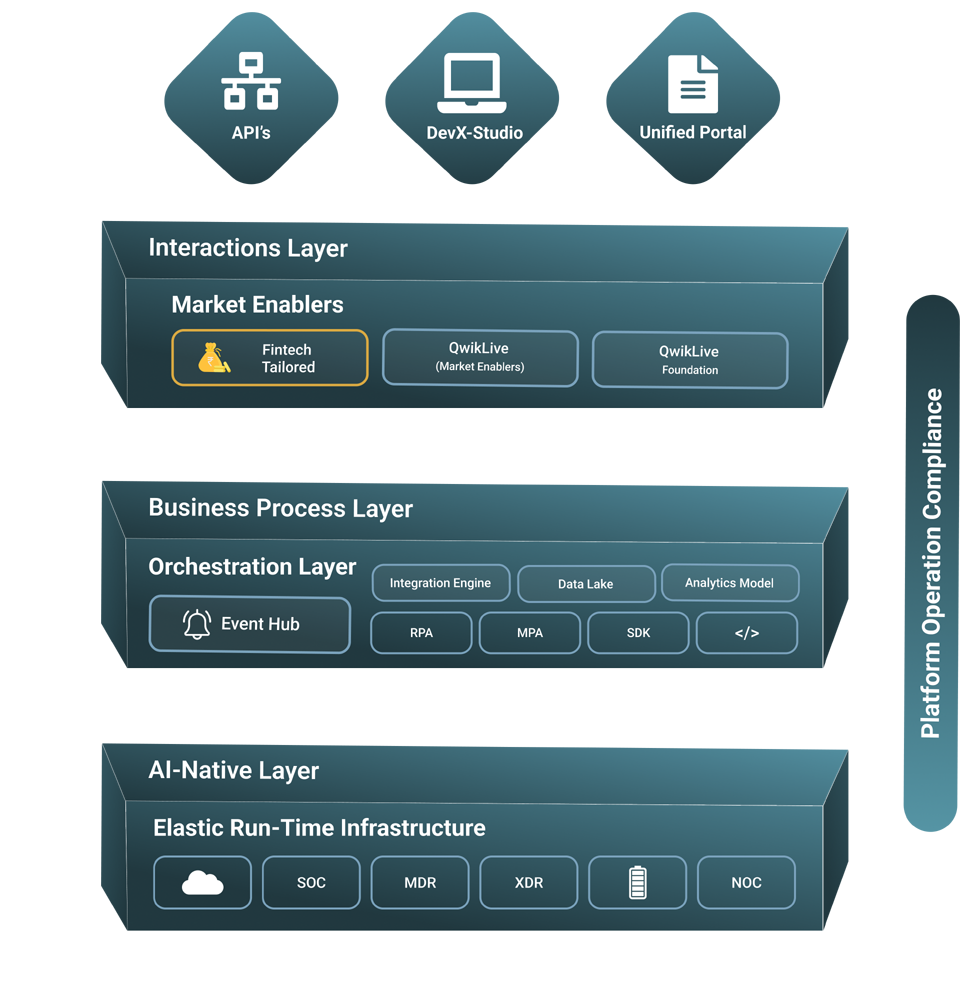 QwikLive unifies infrastructure, integration, security, and orchestration through layered trust levels, giving your business the speed to innovate with the confidence of built-in compliance. You hit the ground with any business centric use cases while bringing the magic of AI with the art of possibility. Banking grade Elastic Runtime Infrastructure which securely hosts all foundation layers coming from the platform and can additionally offer customers to Build With our AI infused Studio, Operate with our Agentic Automation or rely on our very humanly managed service team that will do the job of running your platform. You focus on your business; we do the Heavy Lifting.. that’s our philosophy.